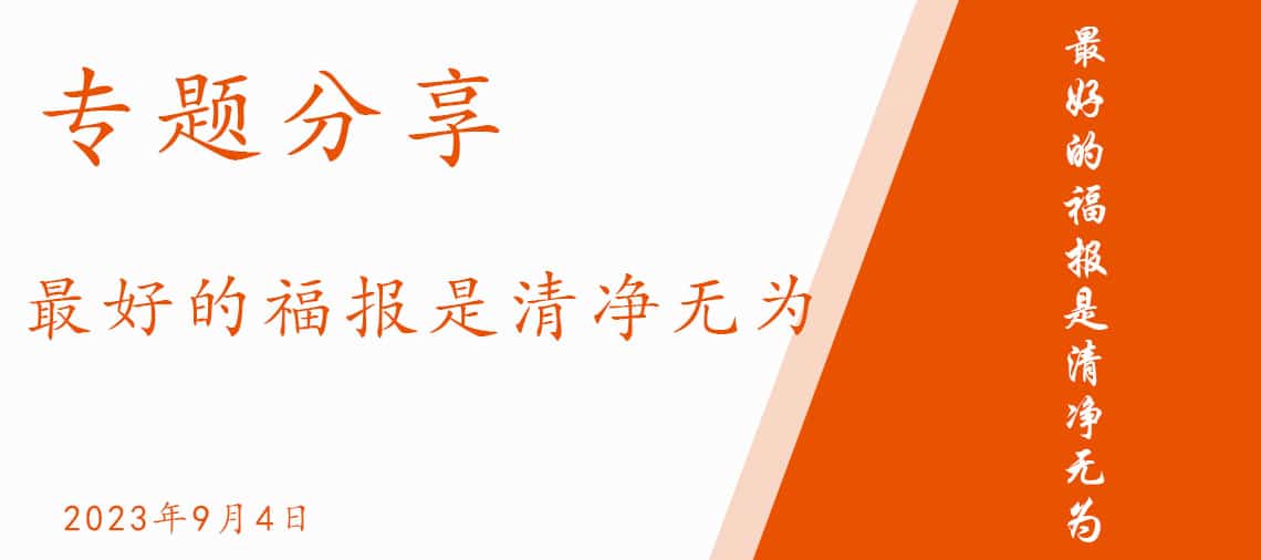 跟大家讲一讲什么叫清净无为。清净无为的福报,清净无为就是清福,享清福。很多人活在这世界上,都说“你这个人要享清福了,你有福气啊,享清福了。”那么师父告诉你们,你有福气,福气还要清。很多人有福气,接下来就烦,对不对?有些人说“我要很多的福气”,财、色、名、食、睡,都是福气,有了之后也开心;但是真正有福气的人——享清福,他希望有清福。举个简单例子,你今天单位里做了某一个部门的负责人,你开心吧?回到家里,“你看,我做经理了”,然后接下来烦恼一大堆,对不对?“我很开心,我终于如愿了,我拿到了第一名”,接下来大家都来找你、签字,然后找你来赞助,找你来……这个福气不是清福。那么今天跟大家讲什么叫清福。清福是有智慧的人才能享的,没有智慧的人享不到清福。当一个人清闲的时候,心静下来的时候,没有罣碍、烦恼的时候,没有感情的牵绊,没有贷款的压力,能够在家里一个人坐着,清清淡淡的,没人来找,没有烦恼,没有忧伤,喝一杯茶,念念经,想着没人搞你,没有人忌妒你,这个世界上没有人诽谤你,这时候你就是享受着清福的福报。