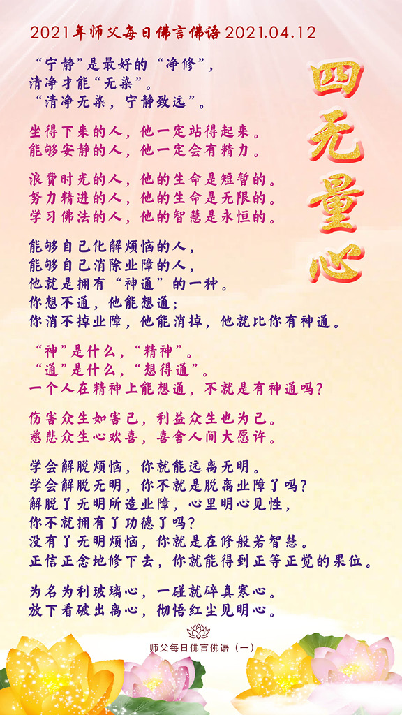 “清净无染,宁静致远”。