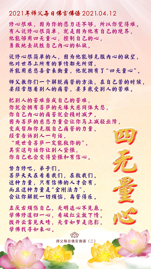 有人说修心很简单,就是因为他有自己的境界,他能够用四无量心,控制自己的心,勇敢地去战胜自己内心的私欲。