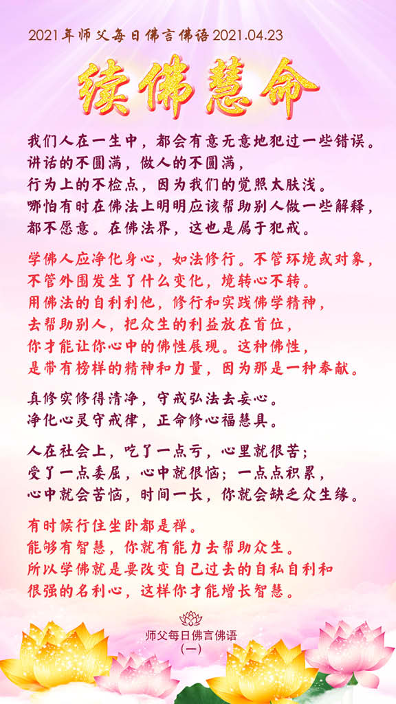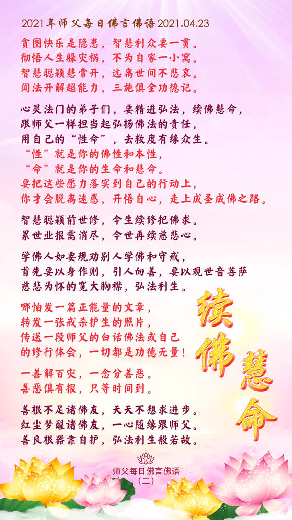 心灵法门的弟子们,要精进弘法,续佛慧命,跟师父一样担当起弘扬佛法的责任,用自己的“性命”,去救度有缘众生。