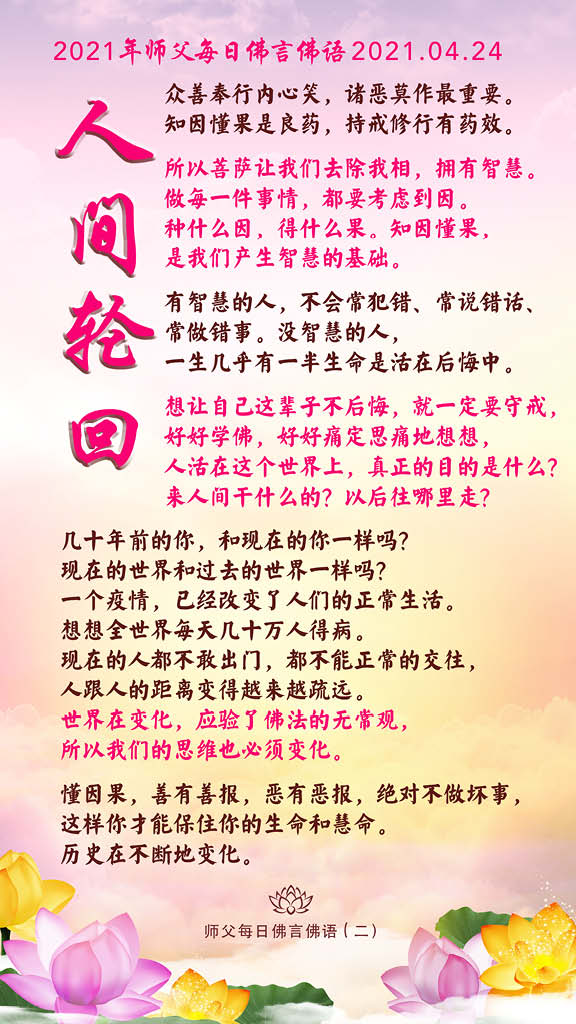 历史在不断地变化。菩萨讲,一切均是无常变化,但行善永远不会错。行善是总相戒,行善积德就是种善因,行善必有善果报。