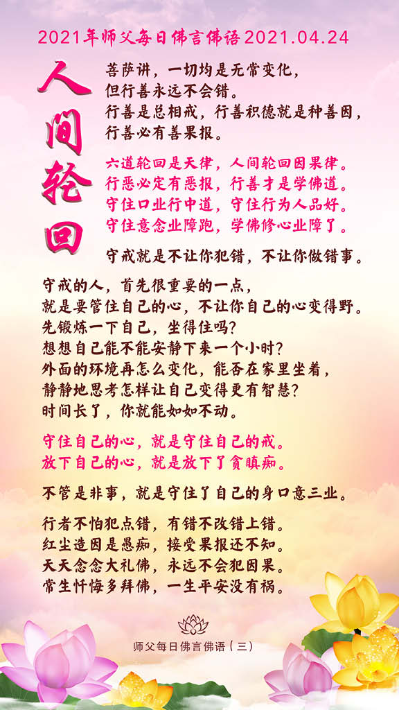 想让自己这辈子不后悔,就一定要守戒,好好学佛,好好痛定思痛地想想,人活在这个世界上,真正的目的是什么?来人间干什么的?以后往哪里走?