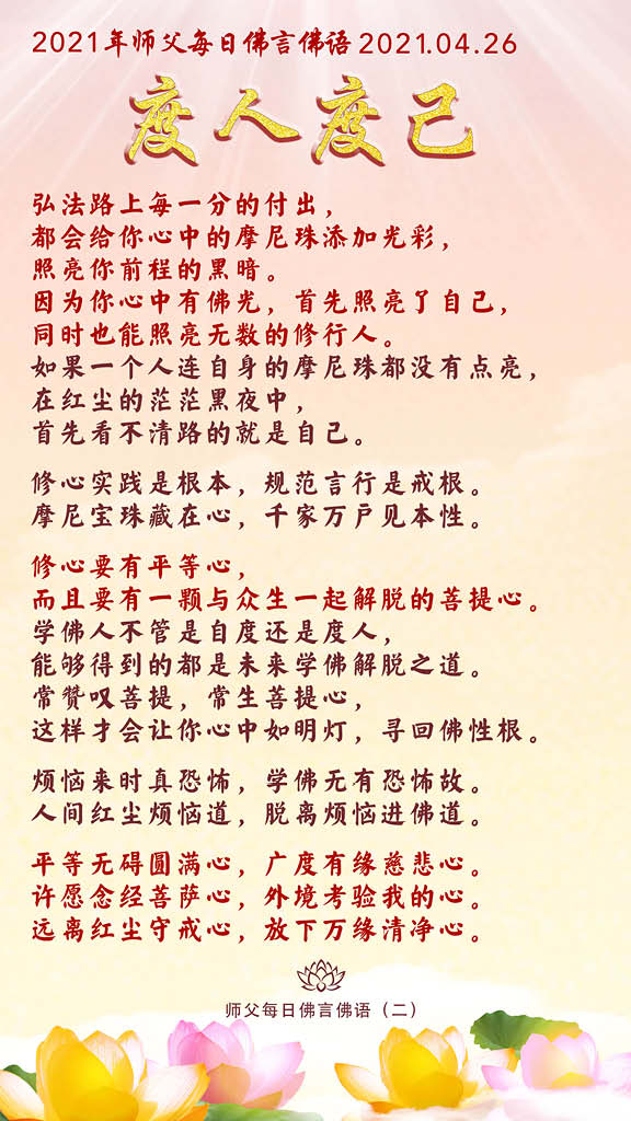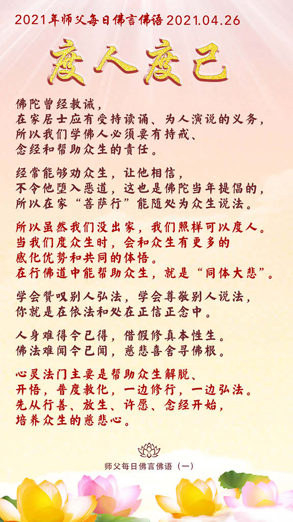 2021年师父每日佛言佛语|2021年4月26日《度人度己》