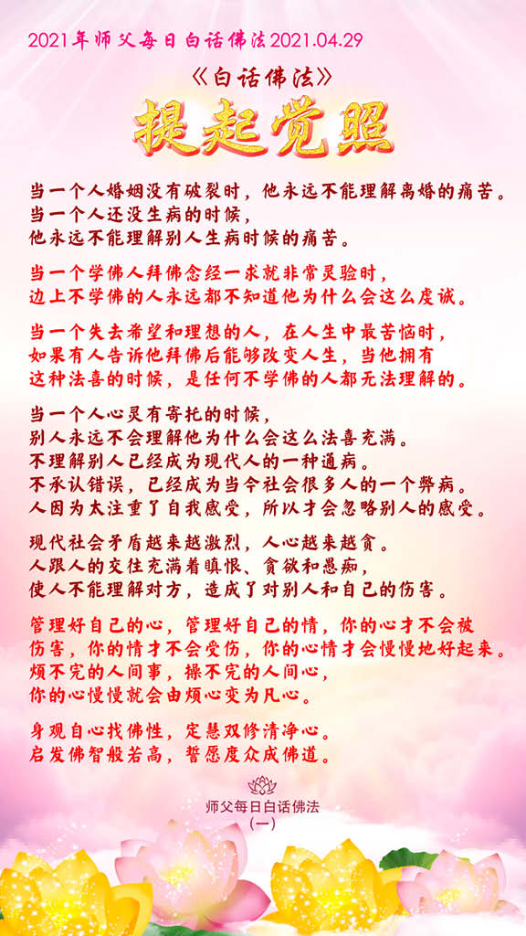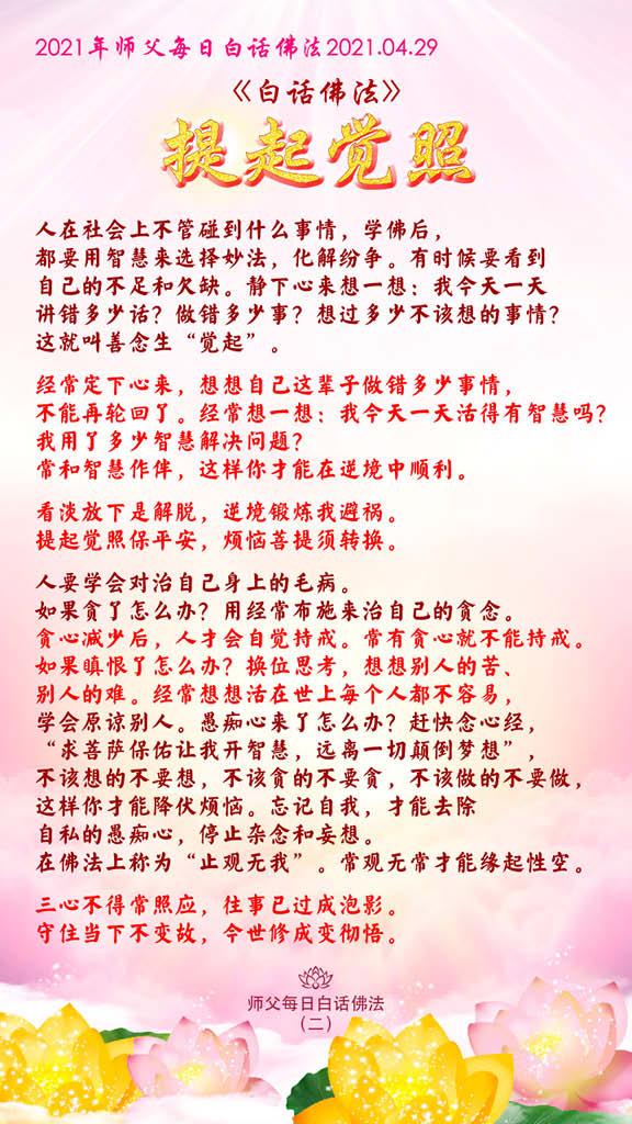 2021年师父每日白话佛法|2021年4月29日 《提起觉照》