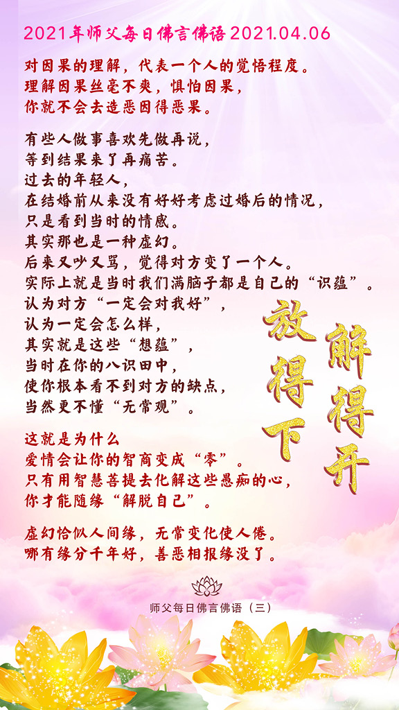 理解因果丝毫不爽,惧怕因果,你就不会去造恶因得恶果。