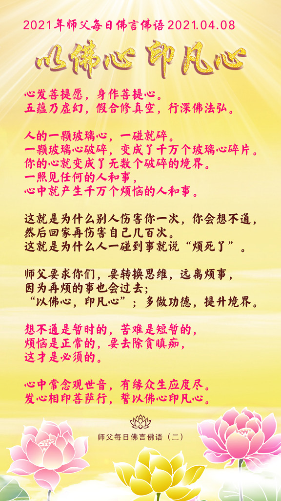 师父要求你们,要转换思维,远离烦事,因为再烦的事也会过去;