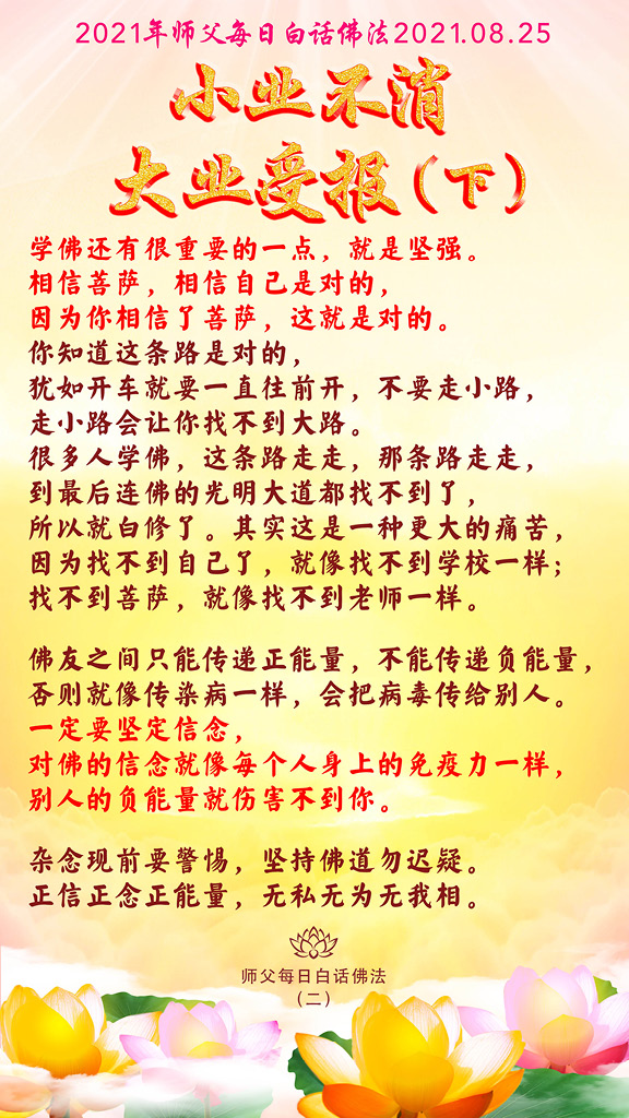 佛友之间只能传递正能量,不能传递负能量,否则就像传染病一样,会把病毒传给别人。一定要坚定信念,对佛的信念就像每个人身上的免疫力一样,别人的负能量就伤害不到你。