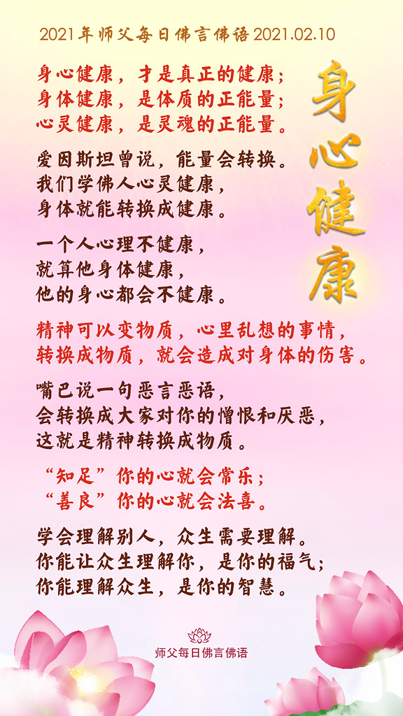 2021年师父每日佛言佛语|2021年2月10日《身心健康》