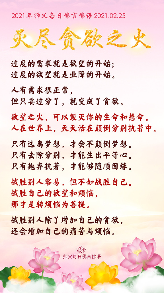 2021年师父每日佛言佛语|2021年2月25日《灭尽贪欲之火》