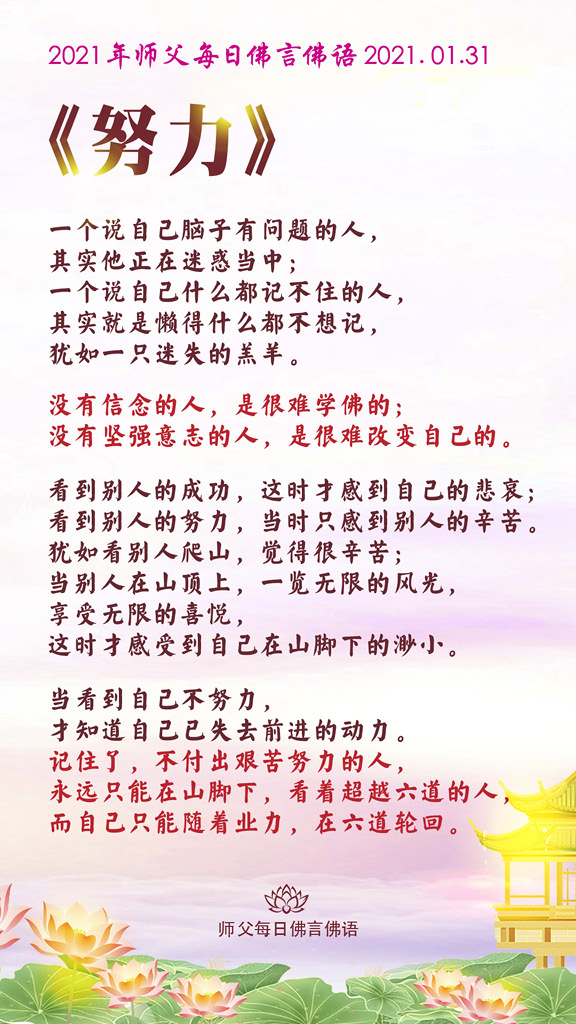 2021年师父每日佛言佛语|2021年1月31日《努力》