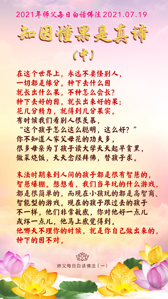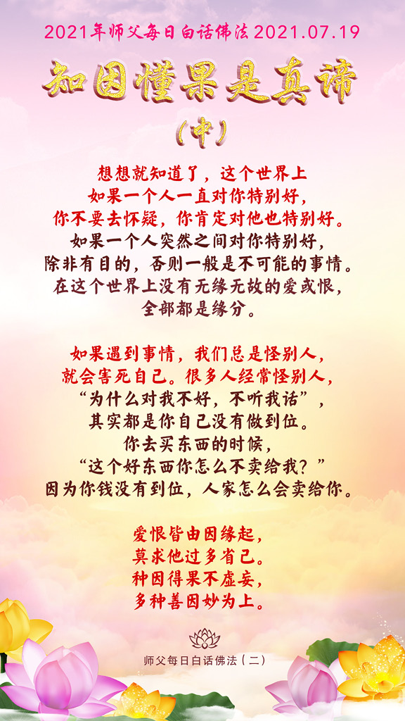 2021年师父每日白话佛法|2021年7月19日《知因懂果是真谛》(中)