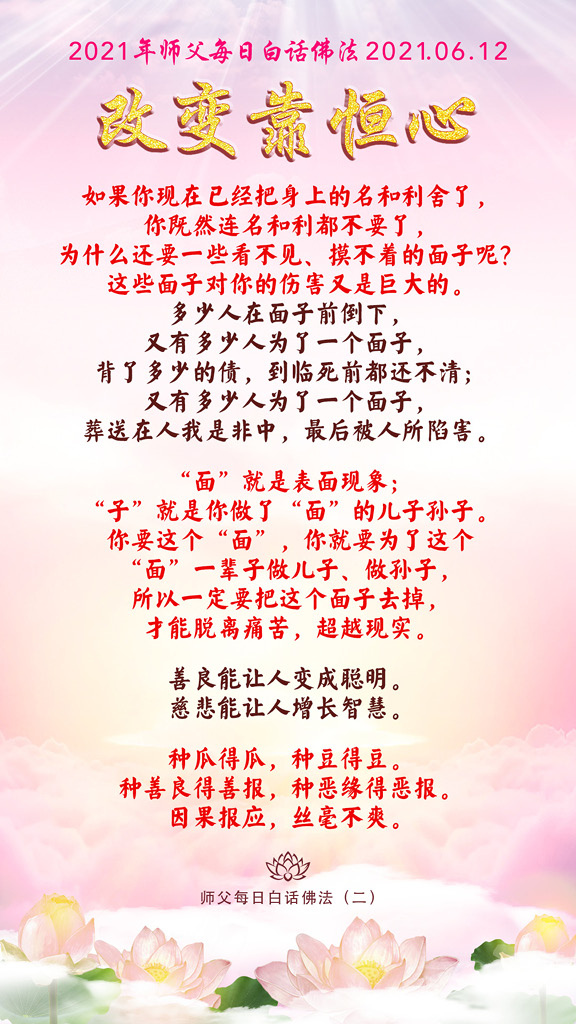 你要这个“面”,你就要为了这个“面”一辈子做儿子、做孙子,所以一定要把这个面子去掉,才能脱离痛苦,超越现实。