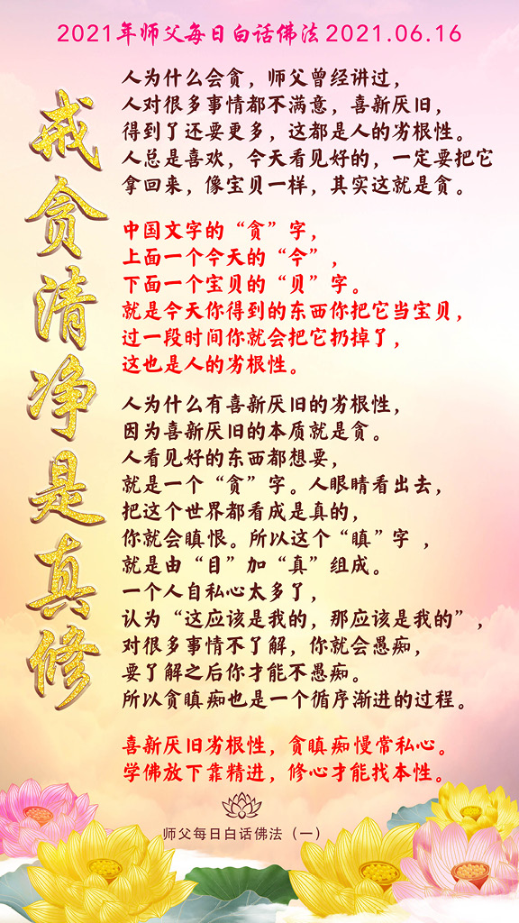 人为什么会贪,师父曾经讲过,人对很多事情都不满意,喜新厌旧,得到了还要更多,这都是人的劣根性。