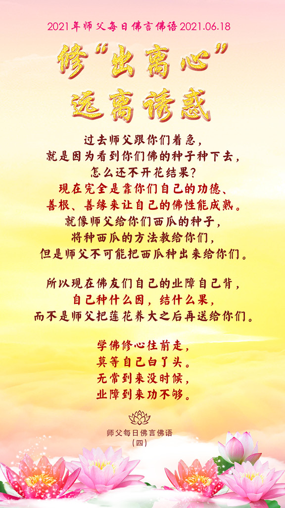所以现在佛友们自己的业障自己背,自己种什么因,结什么果,而不是师父把莲花养大之后再送给你们。