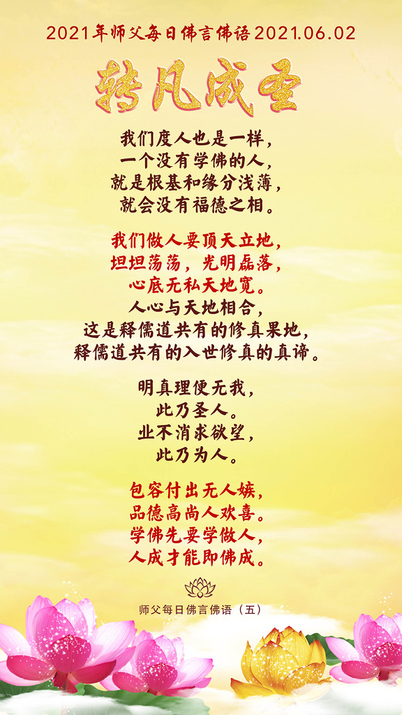 我们做人要顶天立地,坦坦荡荡,光明磊落,心底无私天地宽。人心与天地相合,这是释儒道共有的修真果地,释儒道共有的入世修真的真谛。