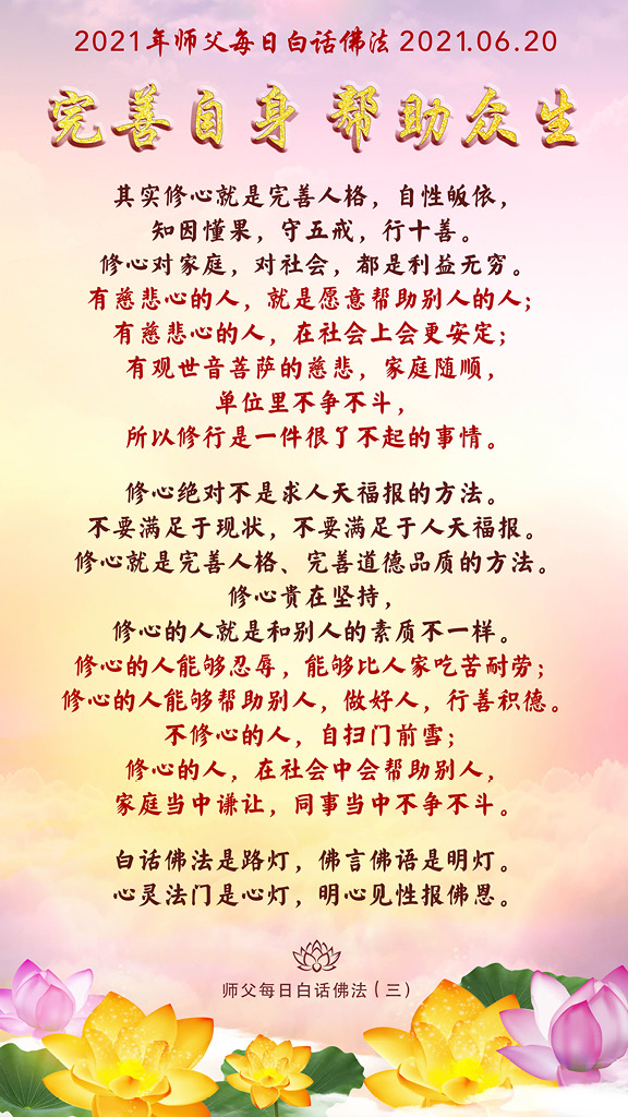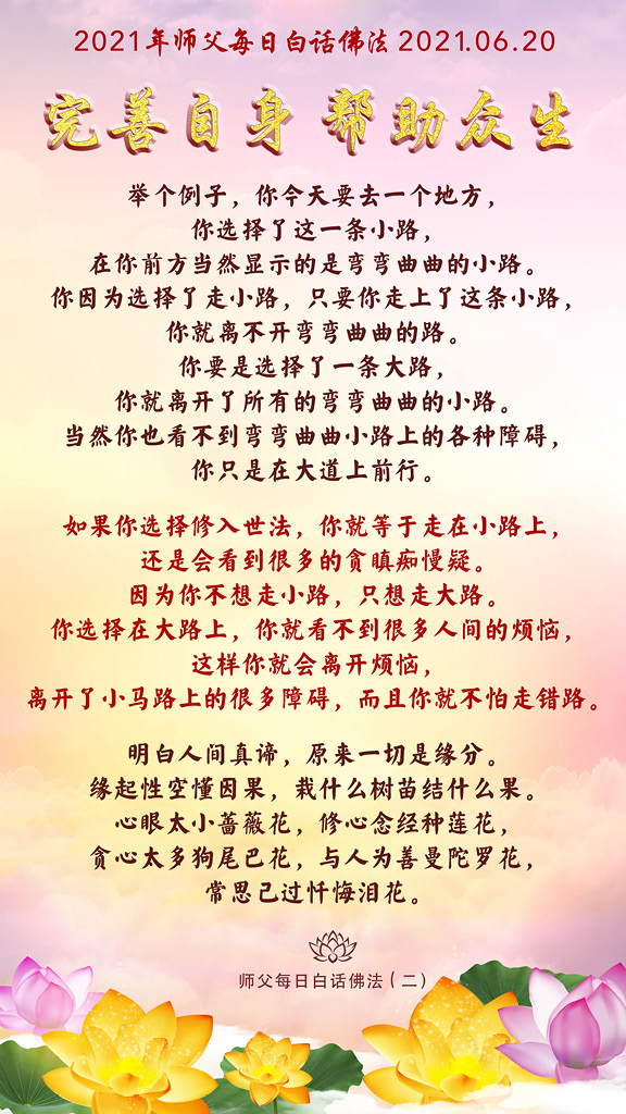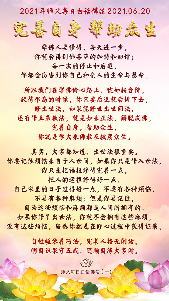 2021年师父每日白话佛法|2021年6月20日《完善自身 帮助众生》