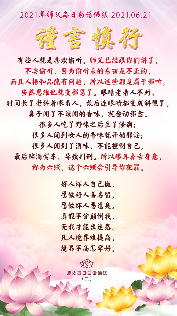有些人就是喜欢偷听。师父已经跟你们讲了,不要偷听,因为偷听来的东西是不正的,而且人格和品德有问题,所以这些都是属于邪听,当然思维也就变邪思了。