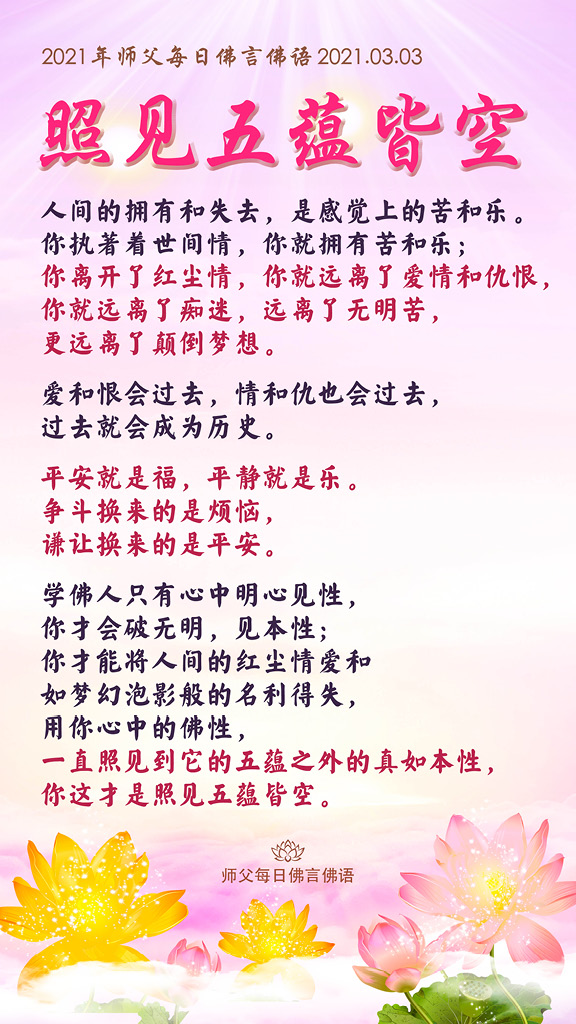 你才能将人间的红尘情爱和如梦幻泡影般的名利得失,用你心中的佛性,一直照见到它的五蕴之外的真如本性,你这才是照见五蕴皆空。