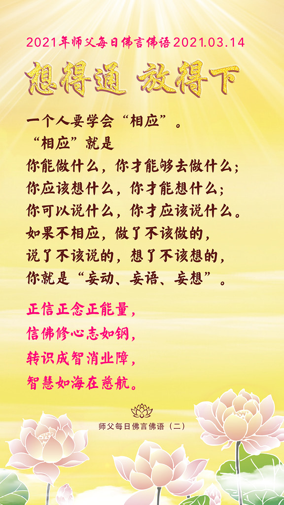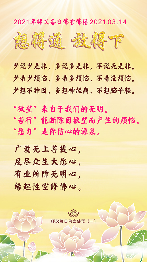 2021年师父每日佛言佛语|2021年3月14日《想得通 放得下》