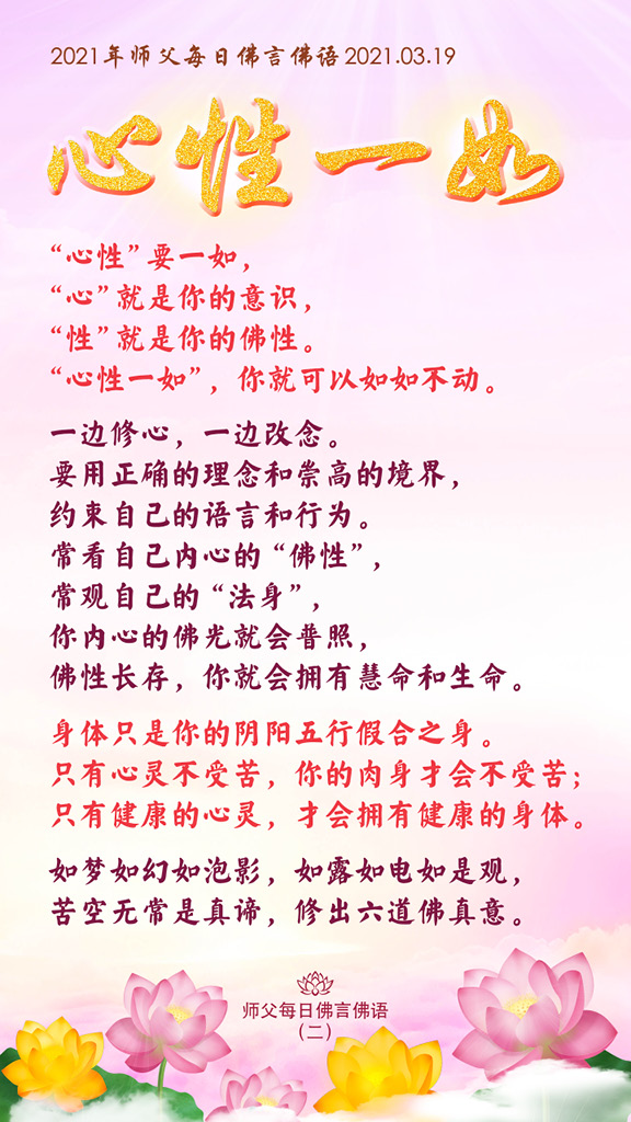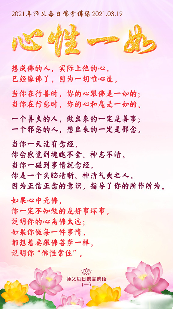 2021年师父每日佛言佛语|2021年3月19日《心性一如》