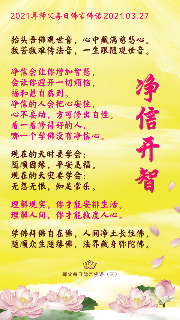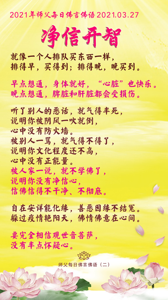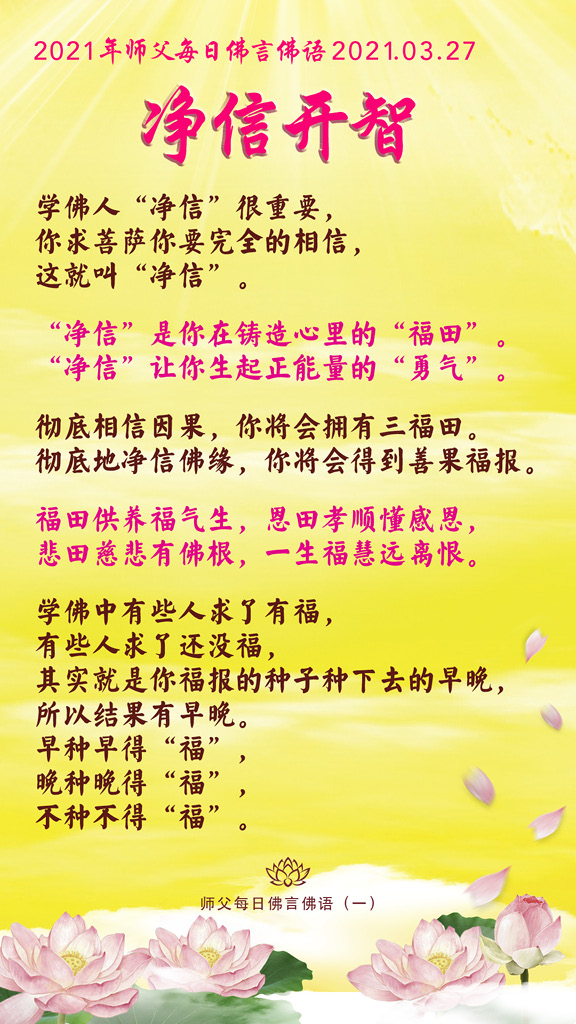 净信会让你增加智慧,会让你避开一切烦恼,福和慧自然到。
