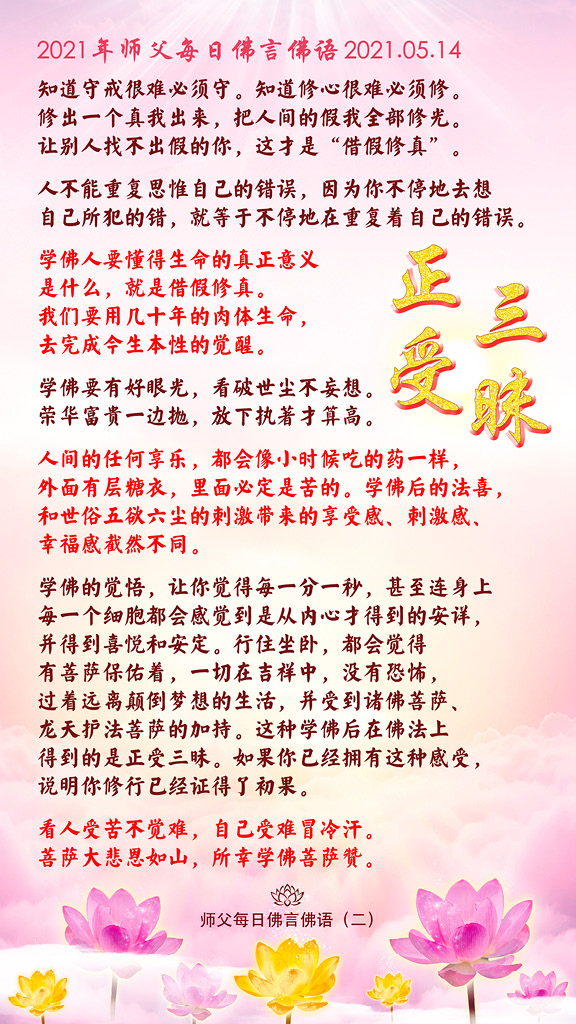 2021年师父每日佛言佛语|2021年5月14日 《正受三昧》