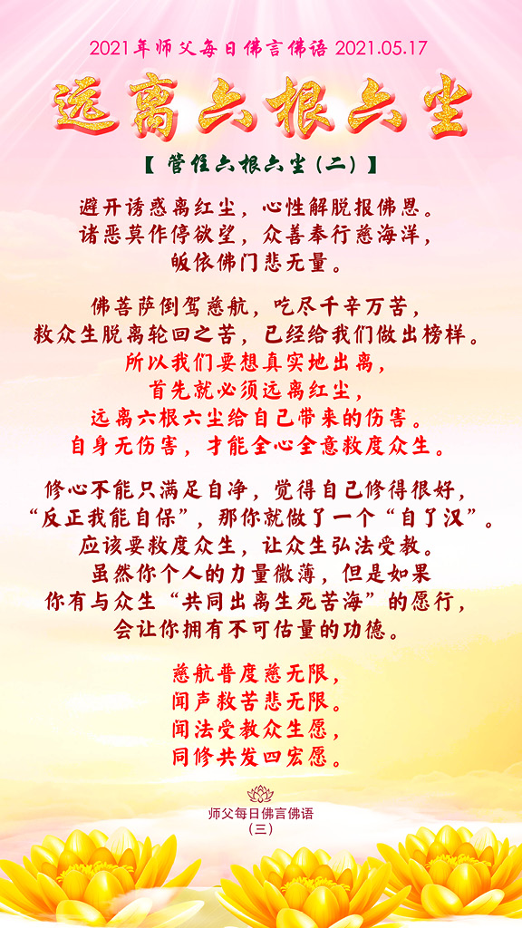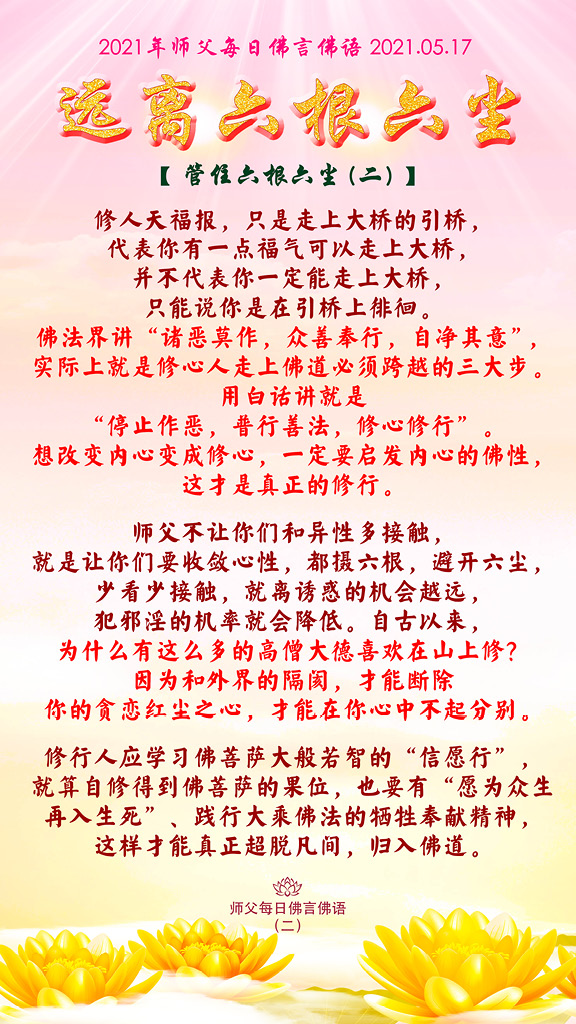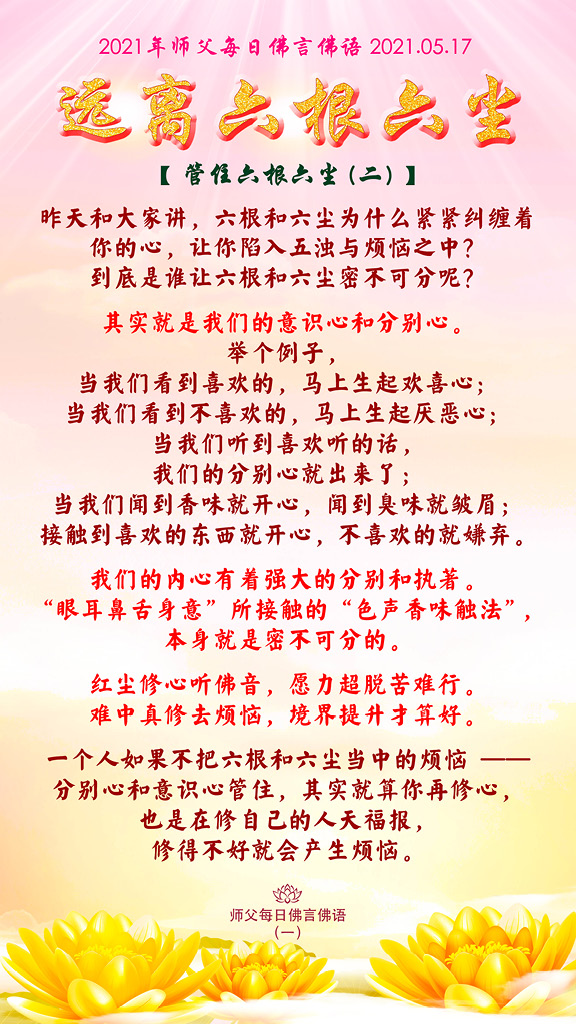 2021年师父每日佛言佛语|2021年5月17日 《远离六根六尘》 ——管住六根六尘(二)