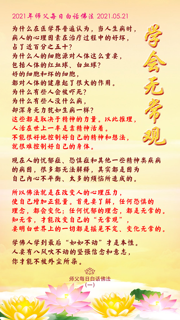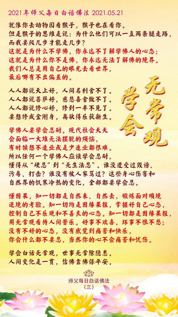 2021年师父每日白话佛法|2021年5月21日 《学会无常观》