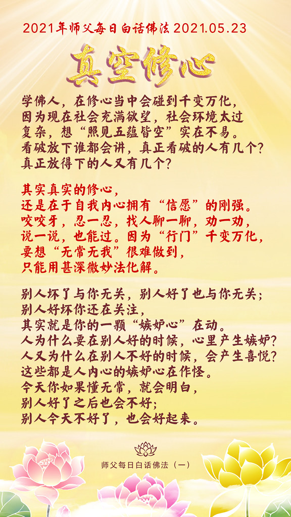其实真实的修心,还是在于自我内心拥有“信愿”的刚强。