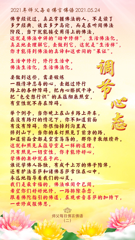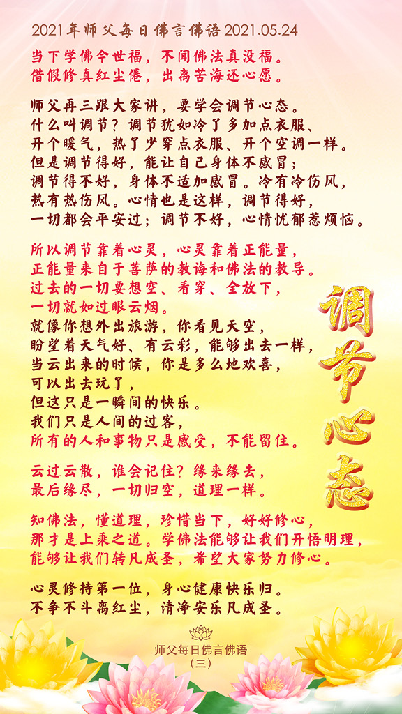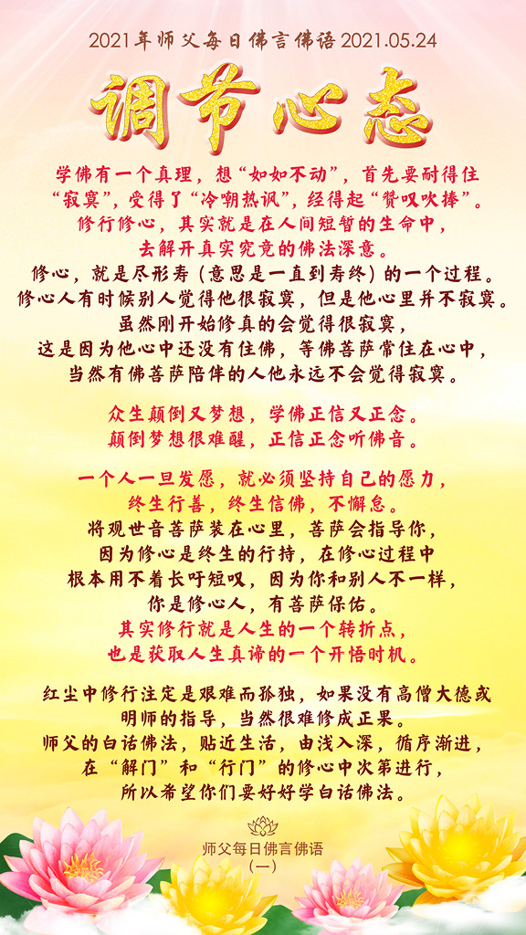 2021年师父每日佛言佛语|2021年5月24日《调节心态》