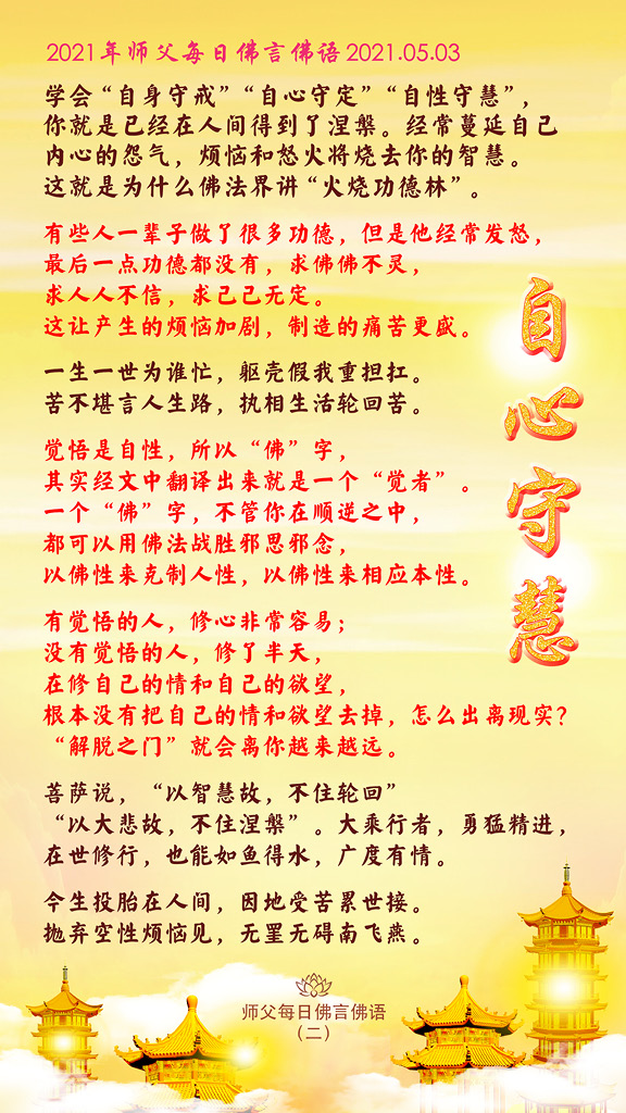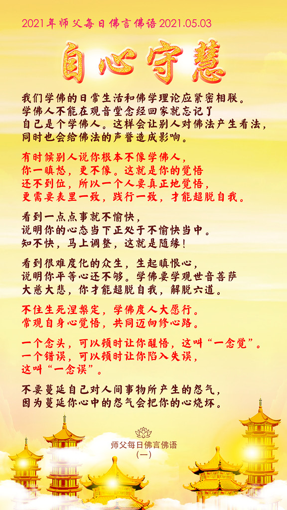 学会“自身守戒”“自心守定”“自性守慧”,你就是已经在人间得到了涅槃。