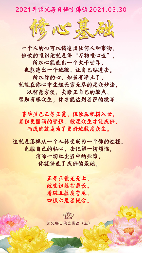 这就是怎样从一个人转变成为一个佛的过程。克服自己的私心,去化解一切烦恼,消除一切红尘当中的业障,你就铸造了成佛的基础。