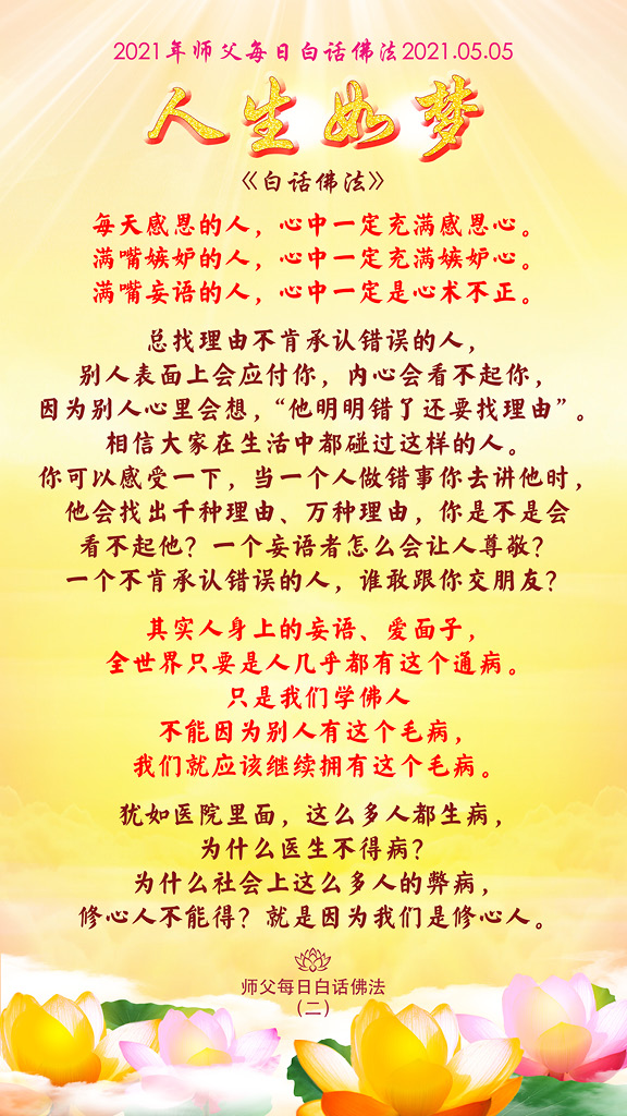 其实人身上的妄语、爱面子,全世界只要是人几乎都有这个通病。只是我们学佛人不能因为别人有这个毛病,我们就应该继续拥有这个毛病。