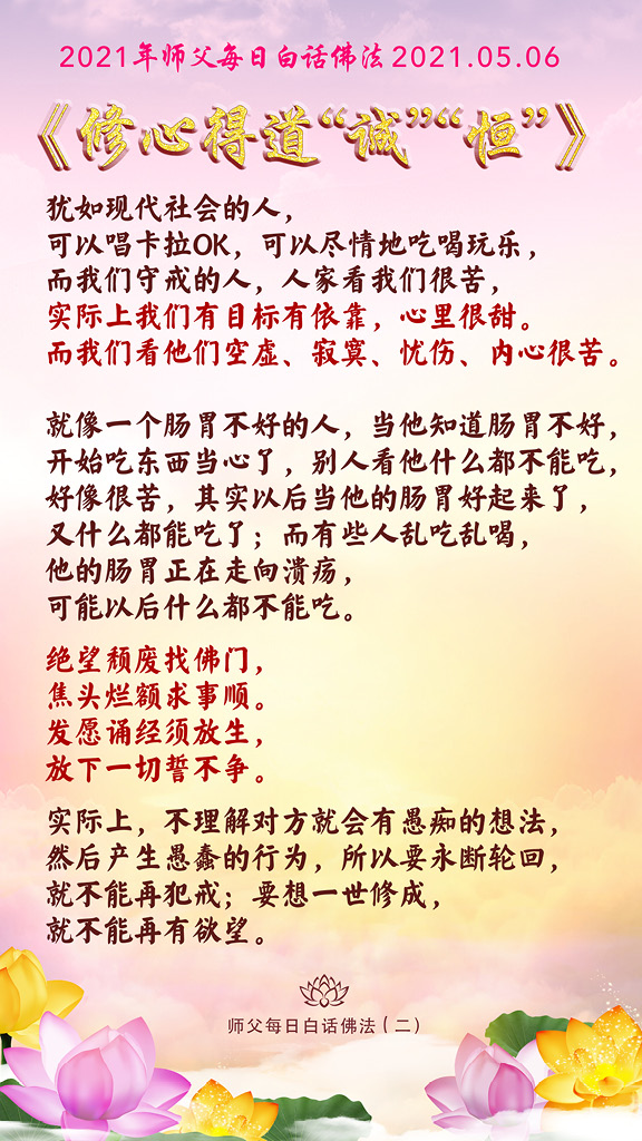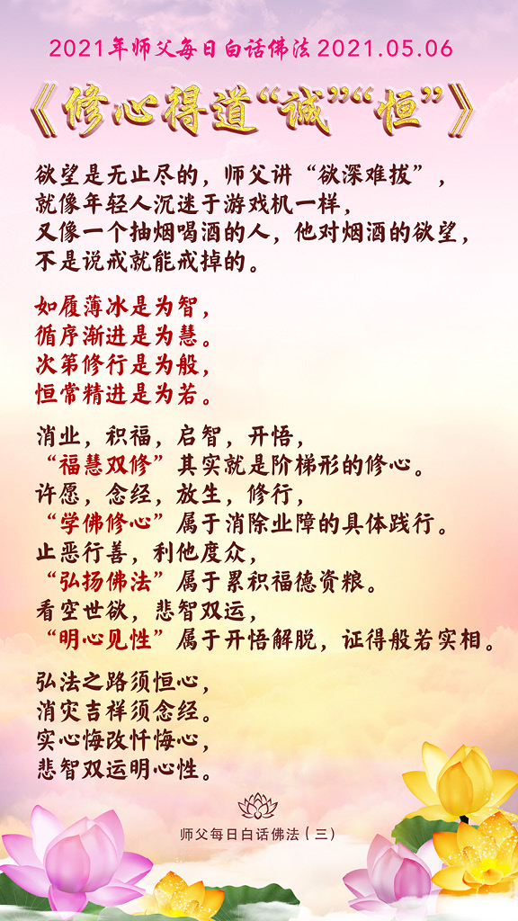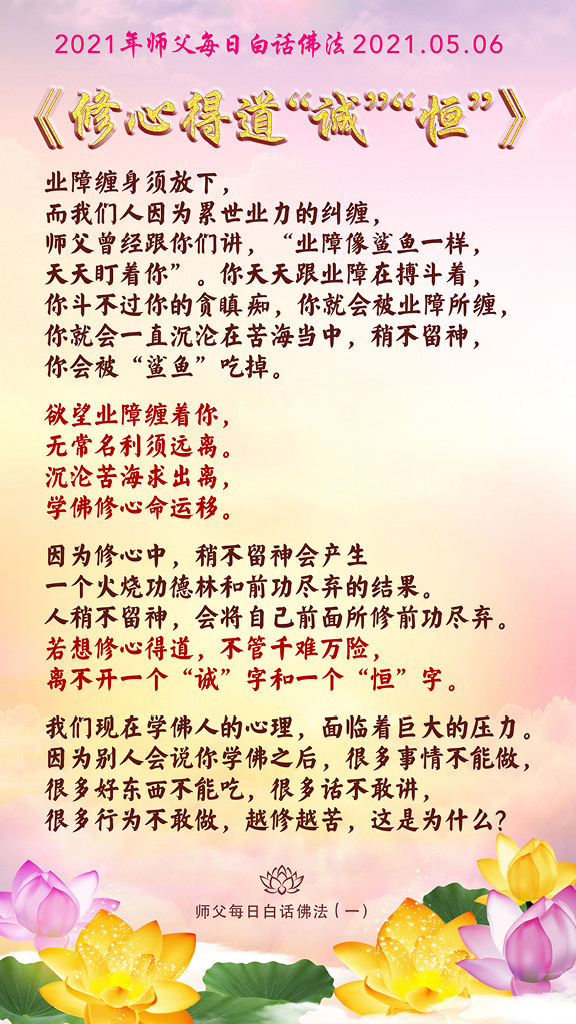 若想修心得道,不管千难万险,离不开一个“诚”字和一个“恒”字。