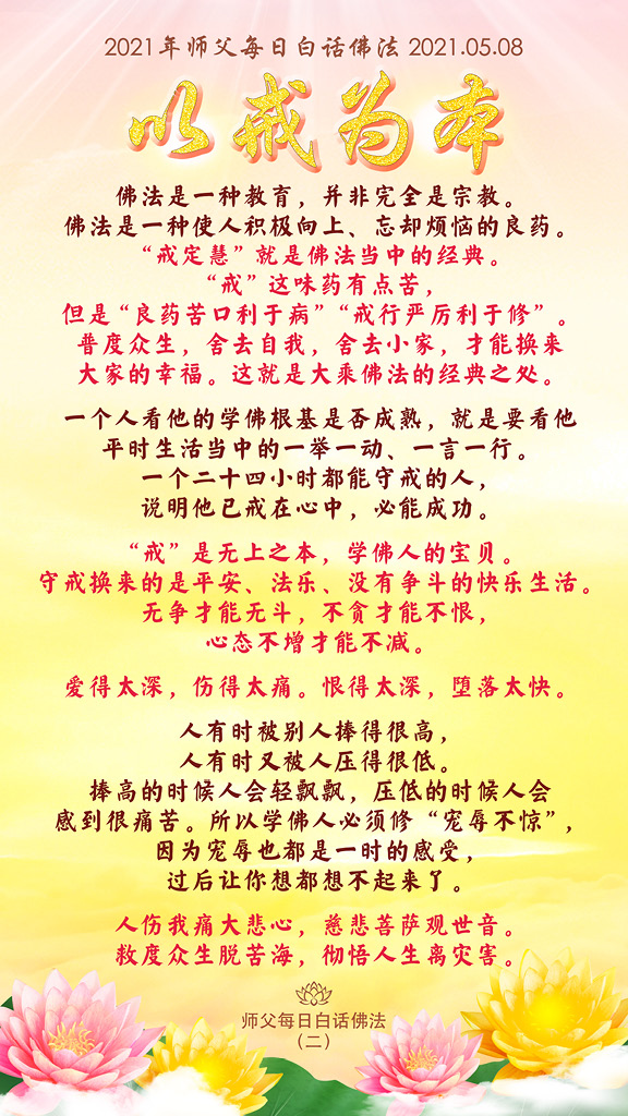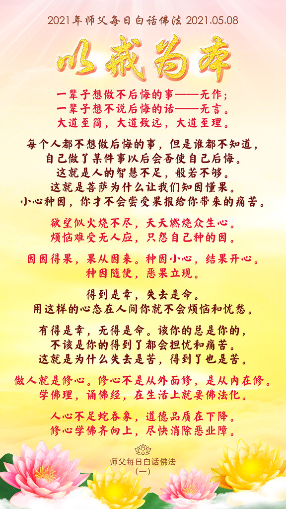 2021年师父每日白话佛法|2021年5月8日《以戒为本》