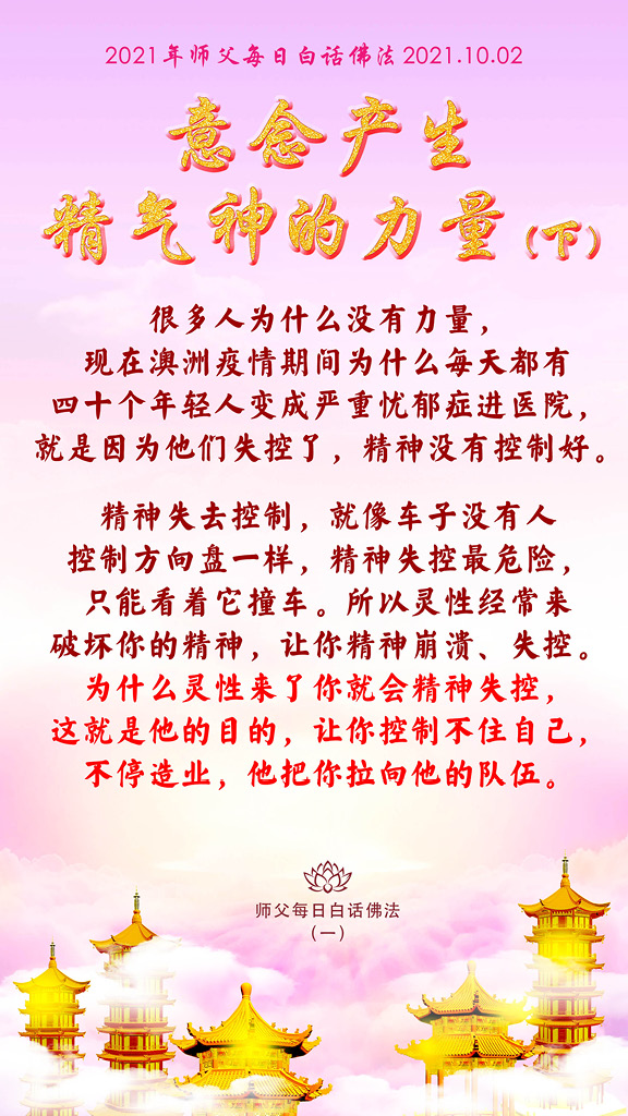 很多人为什么没有力量,现在澳洲疫情期间为什么每天都有四十个年轻人变成严重忧郁症进医院,就是因为他们失控了,精神没有控制好。