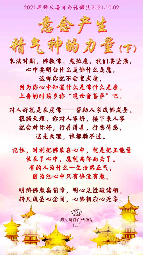 记住,时刻把佛装在心中,就是把正能量装在了心中,魔就离你而去了。有的人为什么一生浩然正气,因为他心中只有佛没有魔。