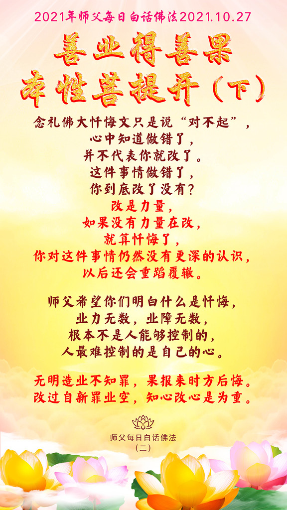 师父希望你们明白什么是忏悔,业力无数,业障无数,根本不是人能够控制的,人最难控制的是自己的心。