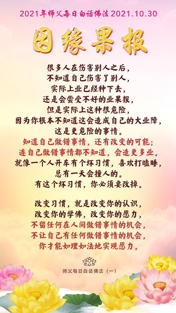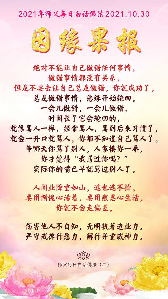 2021年师父每日白话佛法|2021年10月30日《因缘果报》