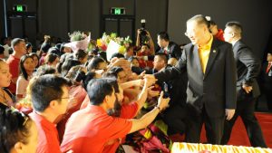 感恩大慈大悲观世音菩萨,感恩龙天护法,感恩十方三世一切诸佛如来,感恩各位嘉宾和我们的法师,感恩来自世界各地以及我们布里斯本的佛友们,大家好。上个月我们去印尼和澳门弘法,法喜充满,仅仅印尼的两场法会就有一万多人参加,感谢观世音菩萨和龙天护法,让我们能够度更多的人学佛修心,改变命运,给自己的人生带来新的希望,谢谢观世音菩萨。(掌声)