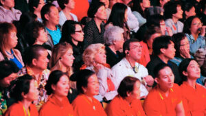 我们学佛人干干净净、老老实实,台长香港两万五六千人的法会,坐在会场里都没有声音的,会场的人都看着奇怪,走的时候座位上垃圾都没有,全部带走;在新加坡开法会三四万人,一点声音都没有,为什么?自身的修养。坐的定的人才能做领导,做得定的人才会有修养,学佛人必须要有修养。如果一个人眼睛左看右看,这种人肯定心不定;稳稳当当坐在那里讲话的,老板就喜欢;爸爸妈妈讲话,孩子稳稳当当坐在那里,就是修养,所以学佛人出来就很有规矩、很有修养,让人一看就特别喜欢。要稳定、稳得住,心稳得住的人能成功,所以说大智若愚,宰相肚里能撑船。