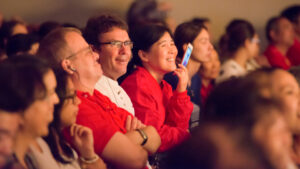 如果今天看到太太脸不开心了,或者先生脸板着和你讲话,不要想他是对你,可能他在外面累了,可能上班很辛苦,可能他做饭不当心把自己的腰扭了。要为别人想,才会随缘,才不会生气,想法和感觉才会彻底变化。(掌声)