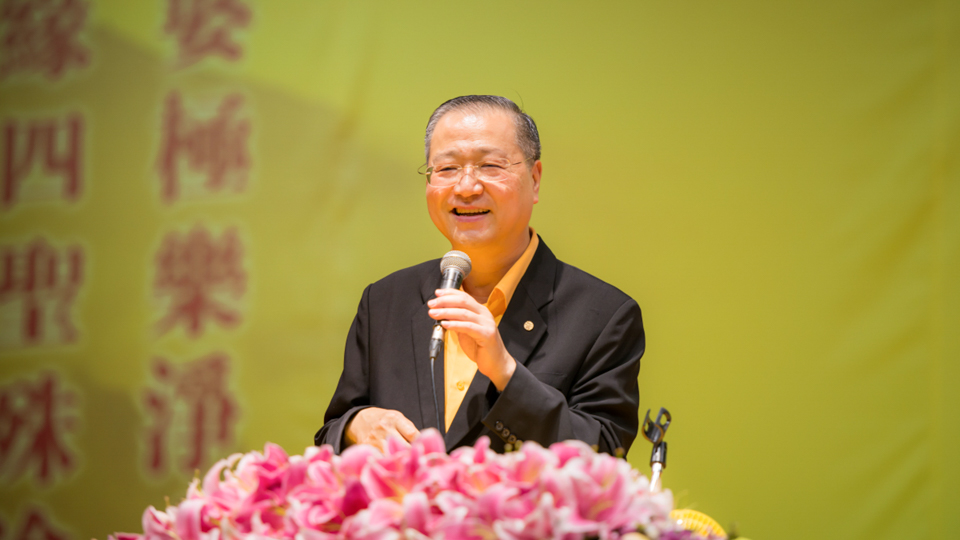 学会心宽,世界对你来说会变得更宽;学会脸宽,一辈子不埋怨;学会笑脸,一辈子不会跟别人翻脸。(掌声)学佛,就是要正确的活在这个世界上,我们不回避压力,不挑剔辛苦。命运本来就没有一帆风顺,面对失去,要更加努力;面对好运气,要学会低声下气。得失随缘,让这个人生,活出一个佛性,活出一个慈悲。(掌声)