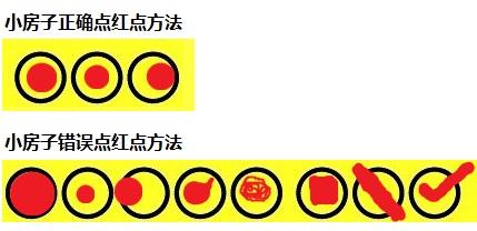 - 不能打勾、不能涂出圈外、不能把圆圈涂满、只能点点儿。红点不能太小,太小会影响效果,红点要至少五分满到八分满(占圆圈的50%-80%)。(如图19)