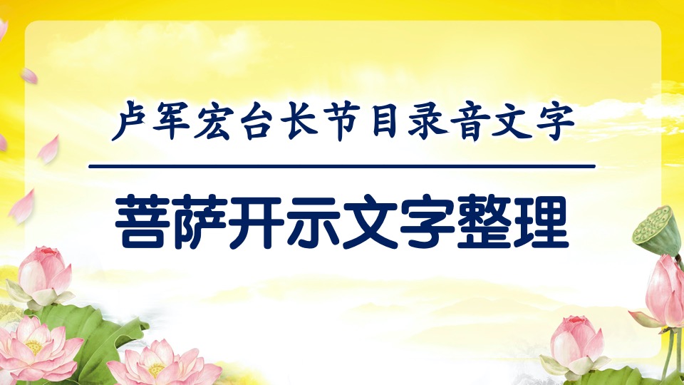 卢军宏台长著作 | 文字版开示 – 在线阅读 卢军宏台长开示 卢台长法会开示 心灵法门初学须知 白话佛法系列丛书 佛学开示集锦 卢军宏台长讲故事 《玄艺问答》录音文字 《玄艺综述》录音文字 《白话佛法》(上传中) 菩萨开示文字整理
