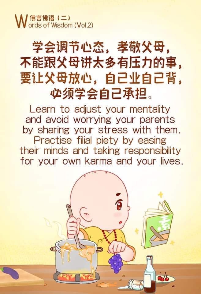 My father might have passed on, but we could still continue to perform our filial duties through the recitation of the Buddhist scriptures, Buddhism learning, self-cultivation and the performance of virtuous deeds on his behalf, as means to liberate him from the shackles of death and rebirth.