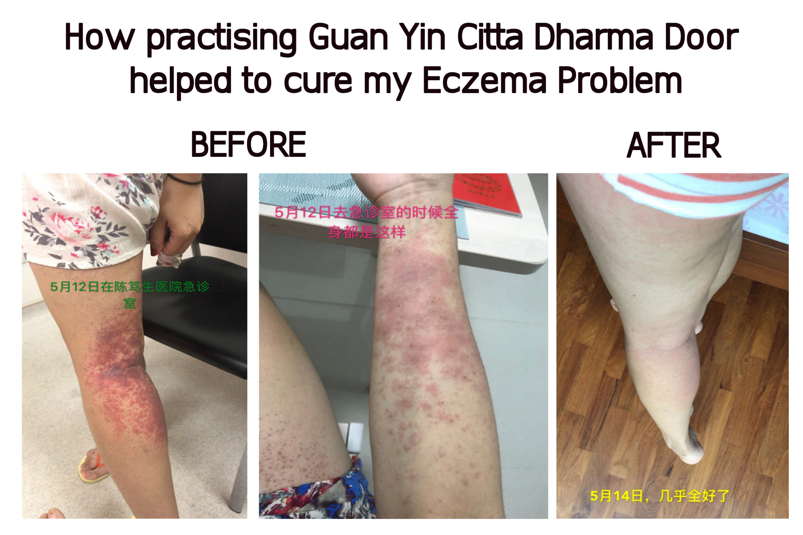 They were unable to identify a cause despite performing a few tests. As such, they referred me to the National Skin Centre. I was especially nervous as my eczema was about to spread to my face and I feared that this would mean disfigurement. I also did not know when the National Skin Centre would contact me. At that time, I was uneasy and tortured to the point where I went without sleep for 2 to 3 days. My mother said that we should try offering Little Houses. Back then, I did not have many Self-Cultivation Record Forms and only had 5 pieces available. Without any other solution, there was no choice but to give it a shot. After offering the 5 Little Houses, I instantly felt my entire body relax and the itchiness was alleviated. That night, I slept especially well. Miraculously, the red spots were almost completely gone when I woke up the next morning, shocking me. My parents also thought of it as very magical.