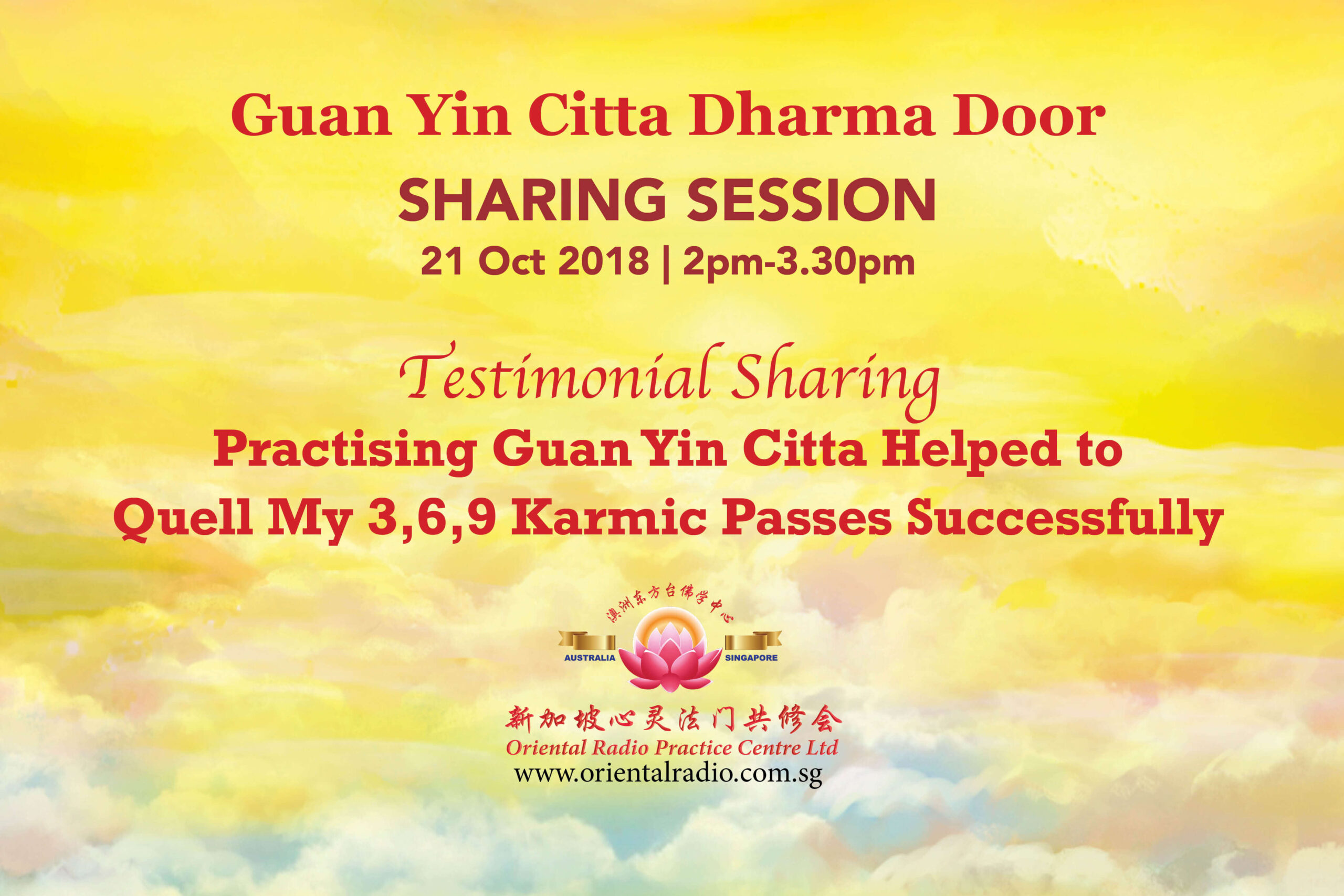 Today I would like to share with you about how Guan Yin Citta Dharma Door helped to quell my 3, 6, 9 karmic passes successfully.