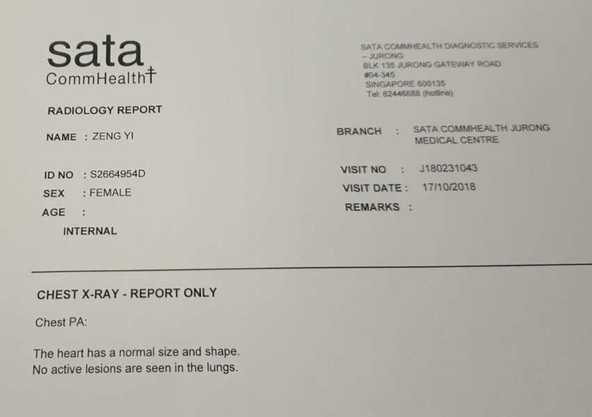 As I had gradually recovered from asthma I decided to go through a check. I was pleasantly surprised that the medical report which was dated 17 October 2018 showed that my lung was all cleared.