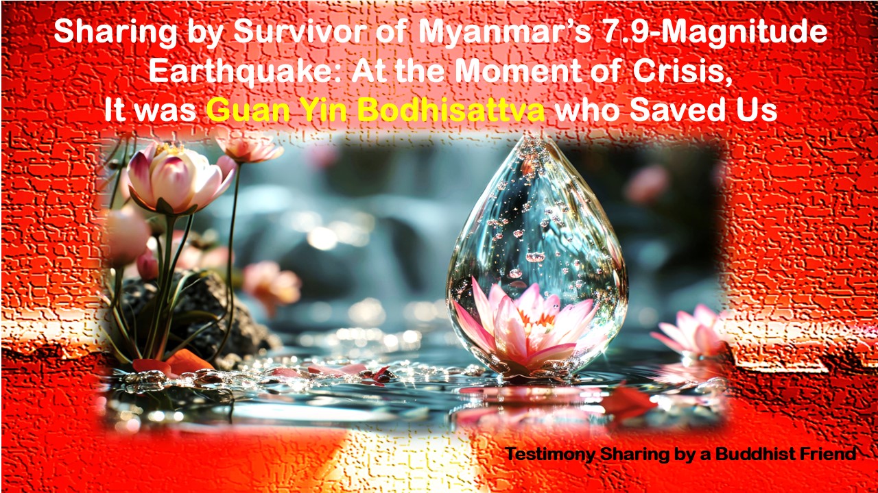 On 28th March this year, a 7.9-magnitude earthquake struck Myanmar. That day, I was on duty at the Guan Yin Hall, having a meal with a few fellow practitioners. Suddenly, the ground and the building began to shake violently. Before we could even react, countless bricks started falling from the ceiling, hitting the ground with a loud crashing sound. Panicked, we quickly took shelter under the tables. In that critical moment, there was truly no time to recite even a single verse of the sutra. All we could do was call out the Sacred Name of Guan Yin Bodhisattva, repeatedly chanting “Guan Yin Bodhisattva, save us!“